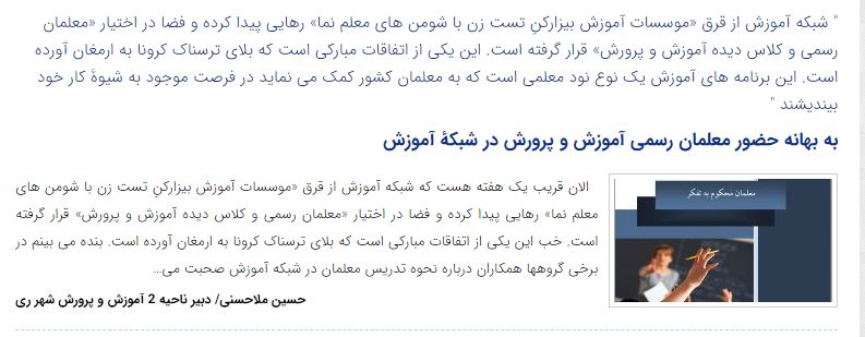 2- نکته مهمی که باید بدان توجه نمود آن است که همه بدانند این اقدام در راستای یک کار فوری و اضطراری اجرایی شده است و چیزی نبوده که از قبل برایش پیش بینی هایی صورت گرفته باشد؟ که چه کسی بیاید ؟ از کجا تا کجا بگوید ؟ چه جوری بگوید؟ اینها جایی مکتوب نشده است و در یک اقدام جهادی از سوی وزارتخانه آموزش و پرورش و صدا و سیما اجرایی شده است.